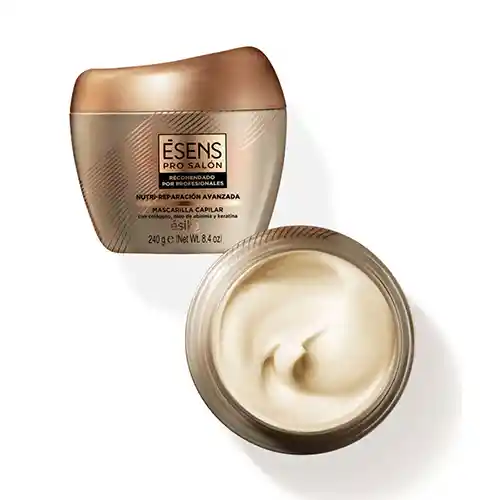 La línea Ésens Pro Salón te deja el cabello con más brillo y suavidad. 10 de cada 10 estilistas lo recomiendan. Nutri-Reparación Avanzada. Mascarilla capilar 240 g / 8.4 oz.