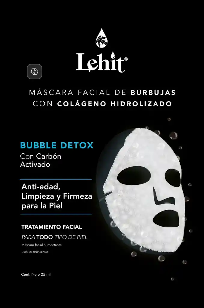 Mascarilla Facial De Burbujas Con Colageno Hidrolizado, Con Carbon Activado - Lehit