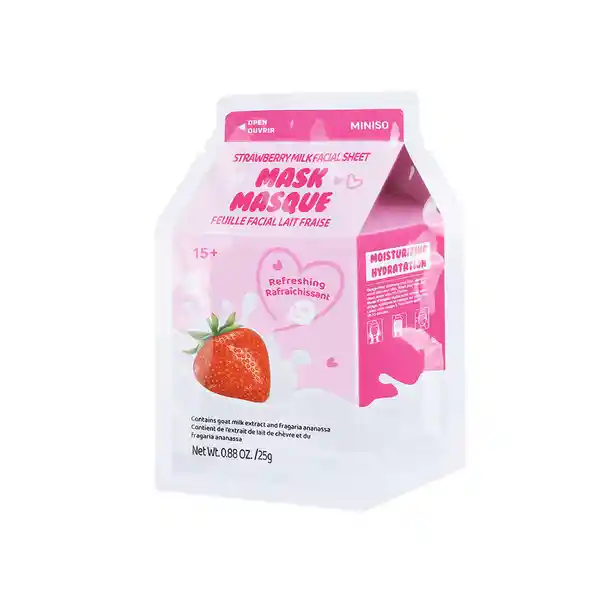 En Miniso Nos Encanta Consentirte Con Los Mejores Productos de Cuidado Facial! Tenemos Para ti Está Mascarilla. Las Mascarillas Faciales Ayudan a Aportar Una Mayor Hidratación a la Piel Del Rostro Gracias a Sus Principios Activos Que Humedecen y Nutren Las Capas Más Profundas Aportando Luminosidad y Revitalizando la Piel. la Tela de la Mascarilla Está Elaborada Con Componentes Naturales. Gracias a Los Extractos de Fresa Ayuda a Tonificar el Rostro y Prevenir la Aparición Temprana de Arrugas Dejando un Resultado Impecable! Modo de Uso: Coloca la Mascarilla Con el Rostro Limpio Ajústala y Adhiérela Suavemente a la Piel Sin Dejar Huecos Déjala Reposar de 10 a 20 Minutos al Retirarla Masajea tu Rostro Con Pequeños Toquecitos Para Que la Esencia se Absorba Completamente Puedes Utilizar un Rodillo de Jade Para Realizar un Masaje Más Completo Encuéntralos Aquí en Miniso! Tip de Uso: Coloca la Mascarilla en tu Refrigerador Durante 10 Minutos Esto Ayudará a Aumentar la Firmeza de la Piel Minimizar la Apariencia de Los Poros y Estimular la Circulación. Úsala de Día o Noche es Perfecta Para Todo Tipo de Pieles. Consulta Con tu Dermatólogo.
