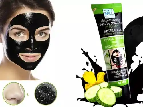 DESCRIPCIÓN : Mascarilla de carbón y pepino creada con carbón activado que absorbe el aceite facial extra para mantener la piel mate y sin manchas, esta máscara facial elimina impurezas, toxinas y suciedad. » Su uso permite una limpieza profunda, dejándote una piel fresca, sin obstruccione. Rápido, eficaz y super satisfactorio. » ayuda a ajustar la piel mientras que las vitaminas y las plantas extractan la piel para restaurar un brillo juvenil. » Aplicar, Secar, Retirar: tan fácil de usar, simplemente aplica la máscara de carbón en la piel facial, deja secar y despega para revelar la piel fresca, impecable y radiante debajo (Ver instrucciones en las fotos) » Contenido: 100mL » Para Pieles Sensibles prueba la reacción alérgica y aplica una máscara delgada en la zona de la nariz/zona T antes de aplicar en la cara completa. » Debido a la fuerte capacidad de absorción y tracción, puede sentir un poco de dolor al desprenderlo. No te preocupes, es normal. » Evita la piel rota o herida. » Si tu piel es muy sensible, consulta a tú dermatólogo antes de usar la mascarilla.