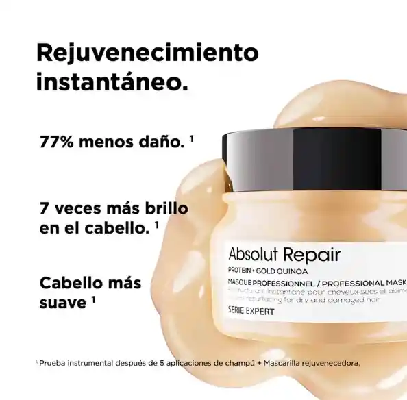 Repara y fortalece profundamente tu cabello con la Mascarilla Repair de L’Oréal Professionnel. Formulada para restaurar la fibra capilar desde el interior, esta mascarilla intensiva hidrata, suaviza y devuelve la vitalidad al cabello dañado por tintes, decoloraciones o herramientas térmicas. 💪 Repara daños profundos y fortalece la fibra 💧 Nutrición intensa sin dejar el cabello pesado ✨ Aporta brillo, suavidad y manejabilidad 🌿 Ideal para cabello seco, débil o tratado químicamente 📦 Presentación: 500 ml 🕒 Uso recomendado: 1 a 2 veces por semana ¡Cabello visiblemente más fuerte, saludable y con vida desde la primera aplicación!