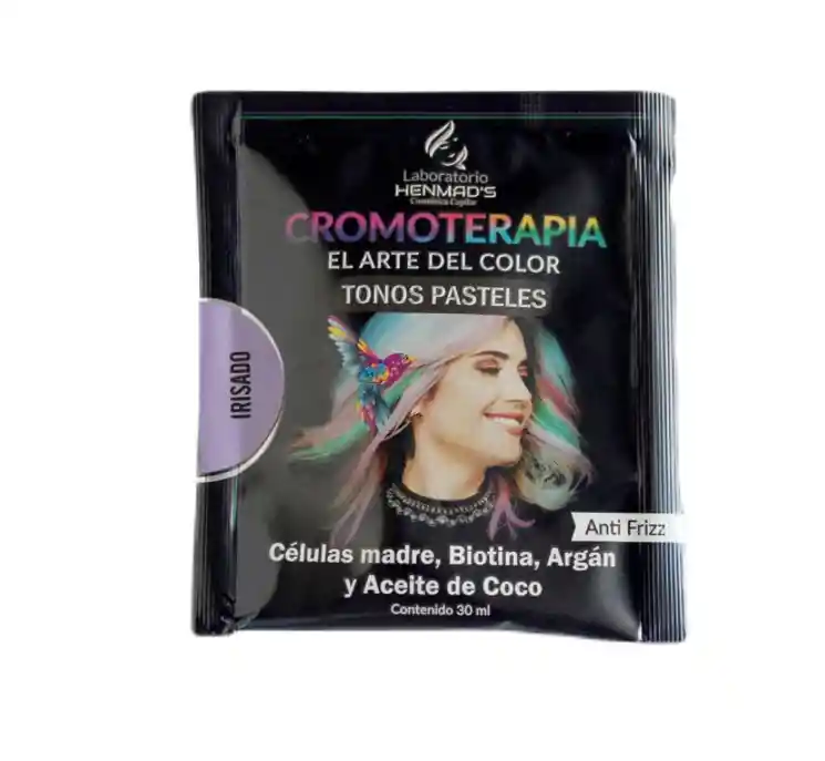 TRATAMIENTO MATIZANTE IRISADO TONO SOBRE TONO CONTIENE: SACHET DE 30ML ESTE PRODUCTO ES UNA MASCARILLA MATIZANTE (TONO SOBRE TONO) IDEAL PARA MANTENER EL COLOR DEL CABELLO TINTURADO, NEUTRALIZAR TONOS O DAR COLOR A MEDIDA QUE SE VA APLICANDO EN CABELLOS ALTAMENTE DECOLORADOS (SIN RASTROS AMARILLOS, NARANJAS O CAFES). CARACTERISTICAS: - Hidrata y matiza los tonos envejecidos. - Filtro UV. - Previene la caída del cabello. - Anti Frizz. DESCRIPCIÓN: Su formula proporciona hidratación profunda del cabello, además, nutre el cuero cabelludo para darle mayor vitalidad a las fibras capilares y prevenir su caída. INSTRUCCIONES DE USO: Aplique uniformemente permitiendo que el producto cubra toda la superficie del cabello. Con un peine distribuya bien el producto y deje actuar de 15 a 20 min. Enjuague. CONTIENE: Células Madre: Regenerador, restaura la hebra capilar, antienvejecimiento, fortalece el folículo piloso. Biotina: Detiene la caída del cabello y acelera su crecimiento, aporta elasticidad. Aceite de coco: Fortalece la raíz, protección de los rayos UV, antioxidante, disminuye la descamación. Aceite de argán: Hidrata el cuero cabelludo aportándole brillo y sedosidad, restaura las puntas abiertas, elimina friz, anti polución, desenreda la fibra capilar.