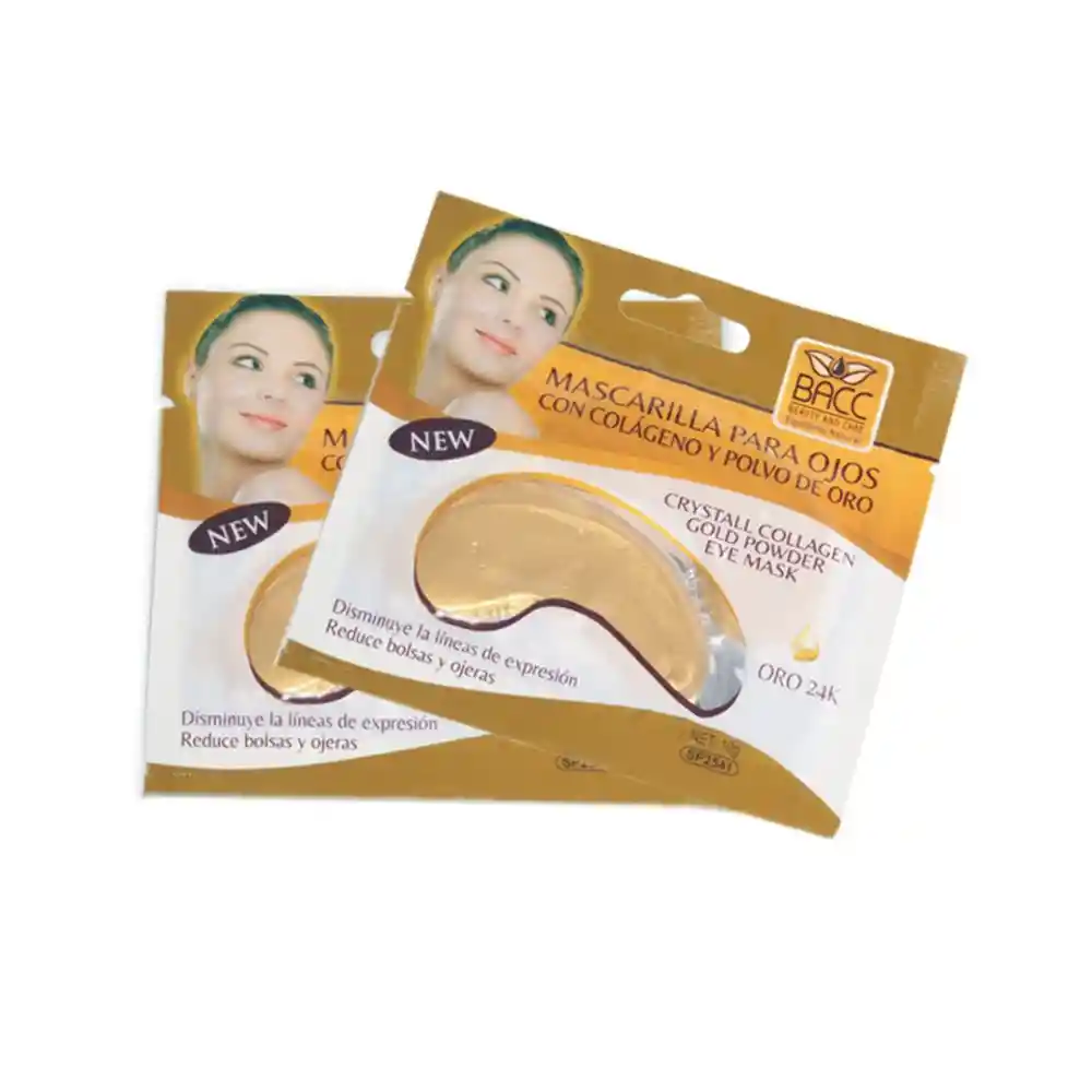 Mascarilla para ojos con colágeno y polvo de oro 24 quilates Disminuye las líneas de expresión. Contiene ácido hialurónico y múltiples nutrientes que la piel necesita para una apariencia vigorosa.Modo de uso: Es importante aprender a aplicarse las mascarillas. para que su función se cumpla lo mejor posible. 1. Se aplica sobre el rostro limpio y con las yemas de los dedos. 2. Dejar que la mascarilla actúe alrededor de 15 a 20 minutos y con una toallita húmeda se va quitando poco a poco. 3. Luego aplicar un poco de agua para retirar cualquier exceso. 4. Se recomienda usar un tónico para que los poros cierren con mayor rapidez.