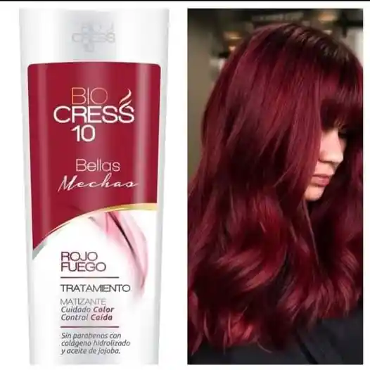 La Mascarilla Rojo Fuego x 300ml de Biocress es un tratamiento matizante diseñado para intensificar, prolongar y mantener el color rojo en cabellos tinturados, mientras los nutre e hidrata profundamente