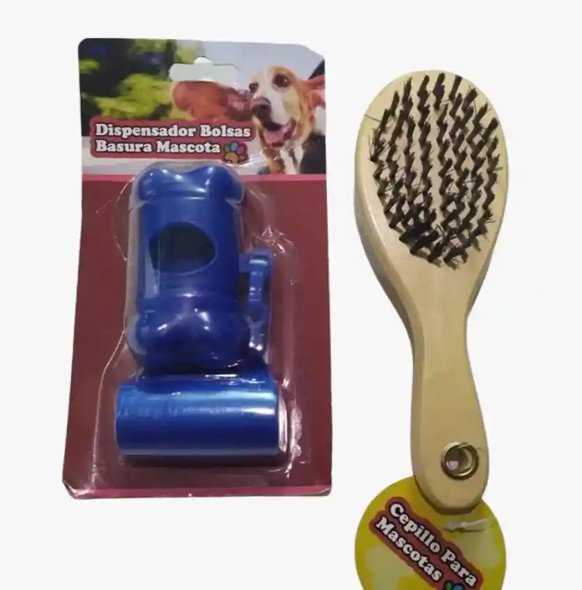 Bolsitas higiénicas biodegradables y dispensador de bolsitas para cuando sales de paso con tu mascota + Cepillo con doble cerdas. Características • Material: Plástico. • Tamaño Aprox.: Dispensador: 8 cm x 2 cm x 2.5 cm • Bolsas: 29 cm x 13 cmx 9 (Fuelle) cm. • Peso Aprox.: Paquete 68 grs. • Es un practico dispensador de bolsas con forma de hueso, se puede colocar como collar o bien llevarlo en la mano. • Tendrás suficientes bolsas y además, las más apropiadas para ir recogiendo los regalillos dejados por tu perrito. • Cada paquete contiene bolsas hechas en polipropileno biodegradable para cuidar el medio ambiente. • Una manera conveniente de hacer la eliminación de desechos del animal doméstico de una manera fácil. * Viene con un gancho conveniente para que llevar, ideal para su uso en campings, viajes, caminatas, etc. Contenido del Paquete • 1 Dispensador de bolsas higiénicas. • Paquetes X30 bolsas Aprox. • Cepillo para peinar Tu gato es vanidoso, y tu perro algo mimado por eso pasa largos ratos acicalando su pelo. Pero también es mimoso y le gusta que seas tú quien le cuide. Te proponemos diferentes productos para el cuidado del pelo de tus peludos amigos para que aproveches algo tan sencillo como peinarlos para estrechar vínculos. Solo tienes que elegir un cepillo para ellos y dedicarle un ratito cada día Cepillo doble para mascota con manija de madera, grande. Medidas Alto: 8 cm – Largo: 23 – Ancho: 7 cm.