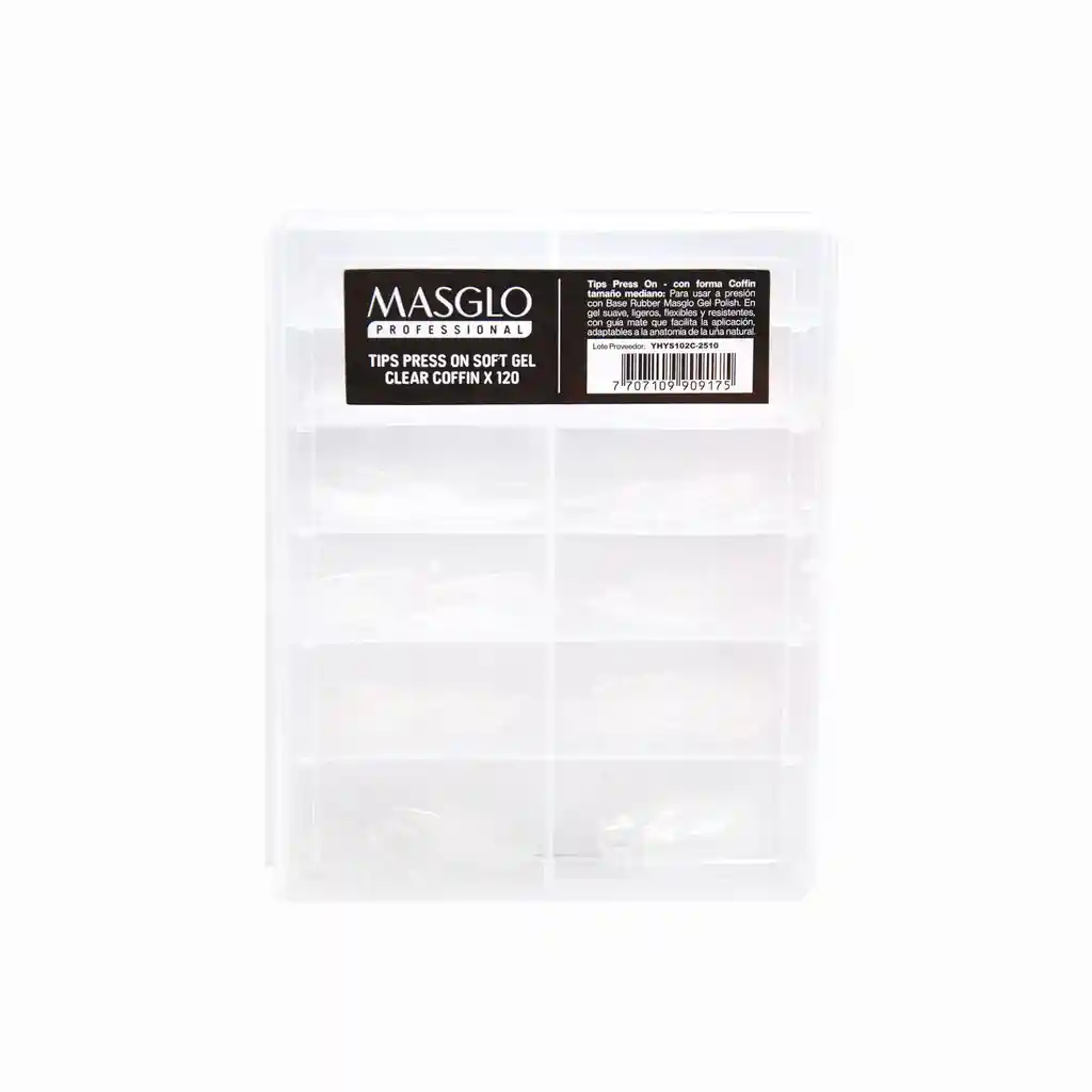 MASGLO ESTUCHE DE UÑAS TIPS PRESS ON SOFT GEL CLEAR COFFIN X 120UND