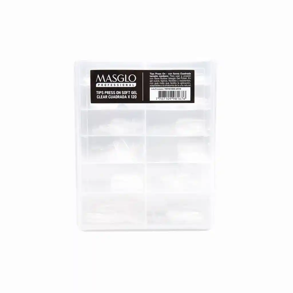 MASGLO ESTUCHE DE UÑAS TIPS PRESS ON SOFT GEL CLEAR CUADRADA X 120UND