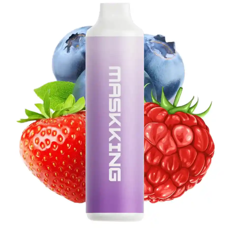 Nuevo vape desechable recargable marca MASKKING con 6,000 puffs, 5% de nicotina. Sabor frutal con notas a frutos rojos, arándanos, uva, moras y frutos del bosque. Batería de 600MAH recargable con USB-C. 15 ml de intenso E-Juice. Prohibida la venta a menores de edad. Producto nocivo para la salud que contiene nicotina, sustancia altamente adictiva. Antes de consumir consulte las indicaciones y contraindicaciones de uso