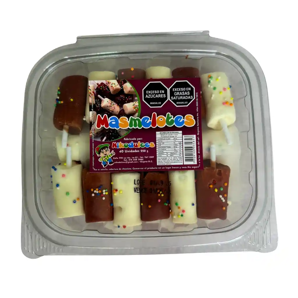 Masmelos recubiertos de chocolate de la marca Nikodulces