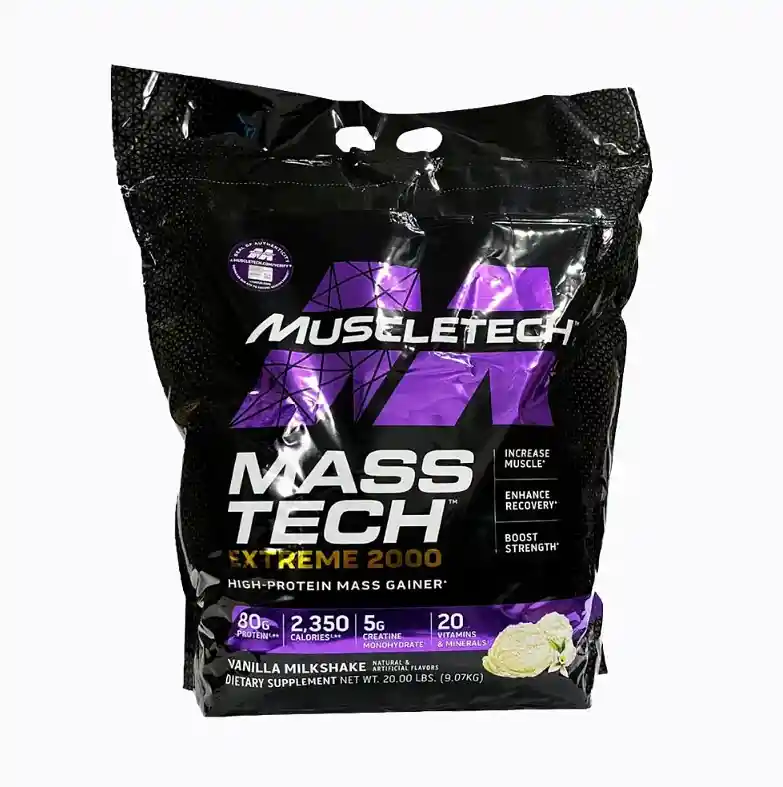 Mass Tech Extreme 2000 * Contiene proteínas, hidratos de carbono, calorías, creatina, aminoácidos y vitaminas para mejores efectos positivos. * Con este formato de 3.2Kg tendrás 6 o 7 tomas del mejor suplemento de la marca Muscletch. Uso recomendado del Mass tech extreme 2000 Diluir una dosis 499 gramos del producto con agua o leche desnatada, consumir después del entrenamiento.