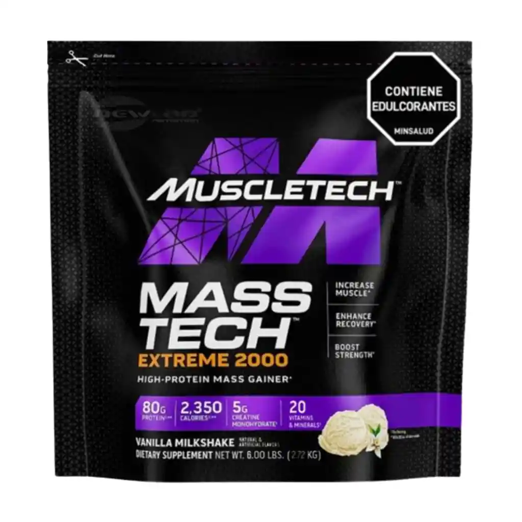 MUSCLETECH Ganador de masa extrema para alto aporte calórico y desarrollo muscular. Mass Tech Xtreme 2000 Muscletech es un suplemento deportivo en polvo tipo mass gainer formulado para apoyar un aumento significativo de masa corporal y un alto aporte calórico en entrenamientos de alta intensidad. Está orientado a personas con altas demandas energéticas o dificultad para subir de peso, siendo ideal para etapas de volumen intenso y rutinas exigentes. Beneficios ✔ Apoya el aumento de masa muscular y peso corporal ✔ Contribuye a un alto aporte energético para entrenamientos exigentes ✔ Ideal para volumen extremo y alta demanda calórica Componentes clave ✔ Mezcla de proteínas para soporte muscular ✔ Carbohidratos complejos para energía sostenida ✔ Fórmula en polvo de fácil preparación ✔ Presentación de 6 libras Uso recomendado ✔ Consumir después del entrenamiento o entre comidas para aumentar la ingesta calórica ✔ Ajustar la porción según necesidades energéticas personales ✔ Integrar junto a una alimentación estructurada y entrenamiento constante