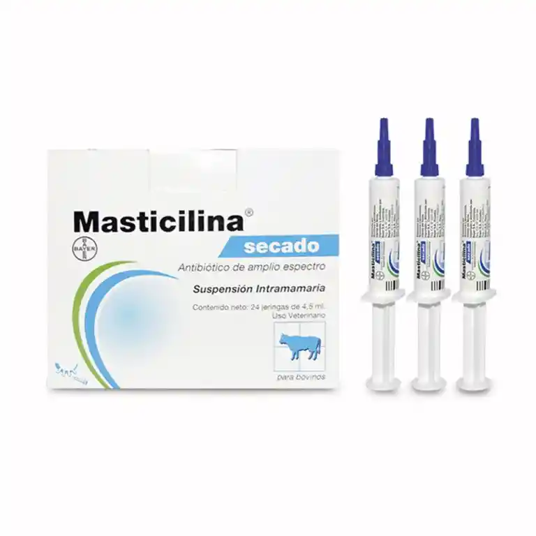 Asociación antibiótica Antimastítico intramamario Cada jeringa x 4.5 mL contiene: Cloxacilina benzatínica 500 mg Ampicilina trihidrato 250 mg Excipientes c.s.p. 1 jeringa