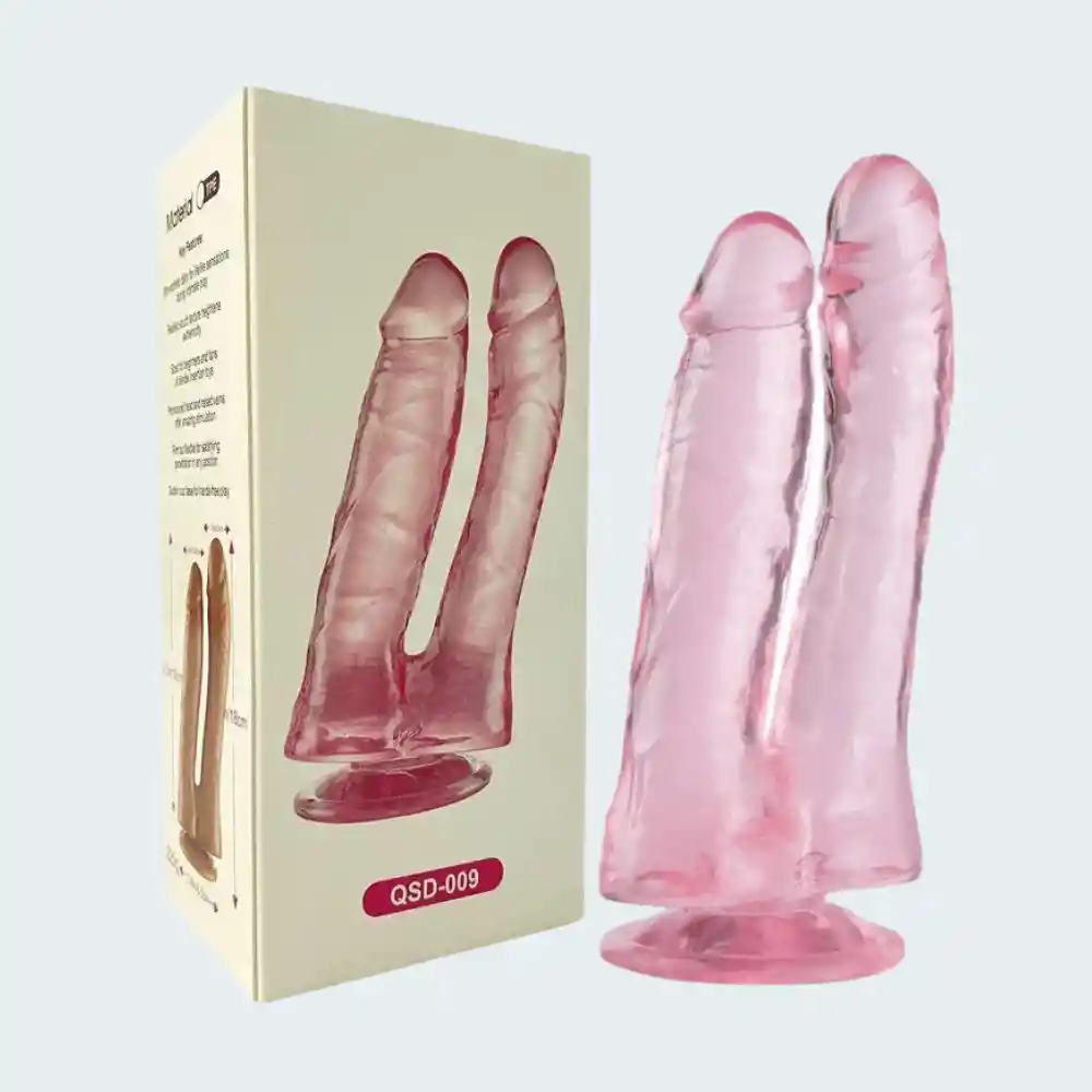 Dildo doble de silicona médica suave y flexible, ideal para doble penetración y una experiencia intensa. Su diseño realista con ventosa brinda mayor estabilidad y comodidad. Largo de 17 cm (12 cm insertables), diámetro de 4 cm.