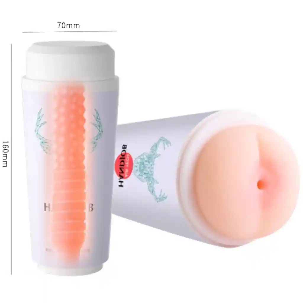 Masturbador con una silicona que se siente como piel real y se calienta con el uso Dentro de una copa para agarre mas facil Diseño de Ano. Tiene dentro unos pequeños estimuladores que permiten un mayor placer en la masturbación. Tamaño 15cm x 6cm Recomendado para penes de hasta 15cm