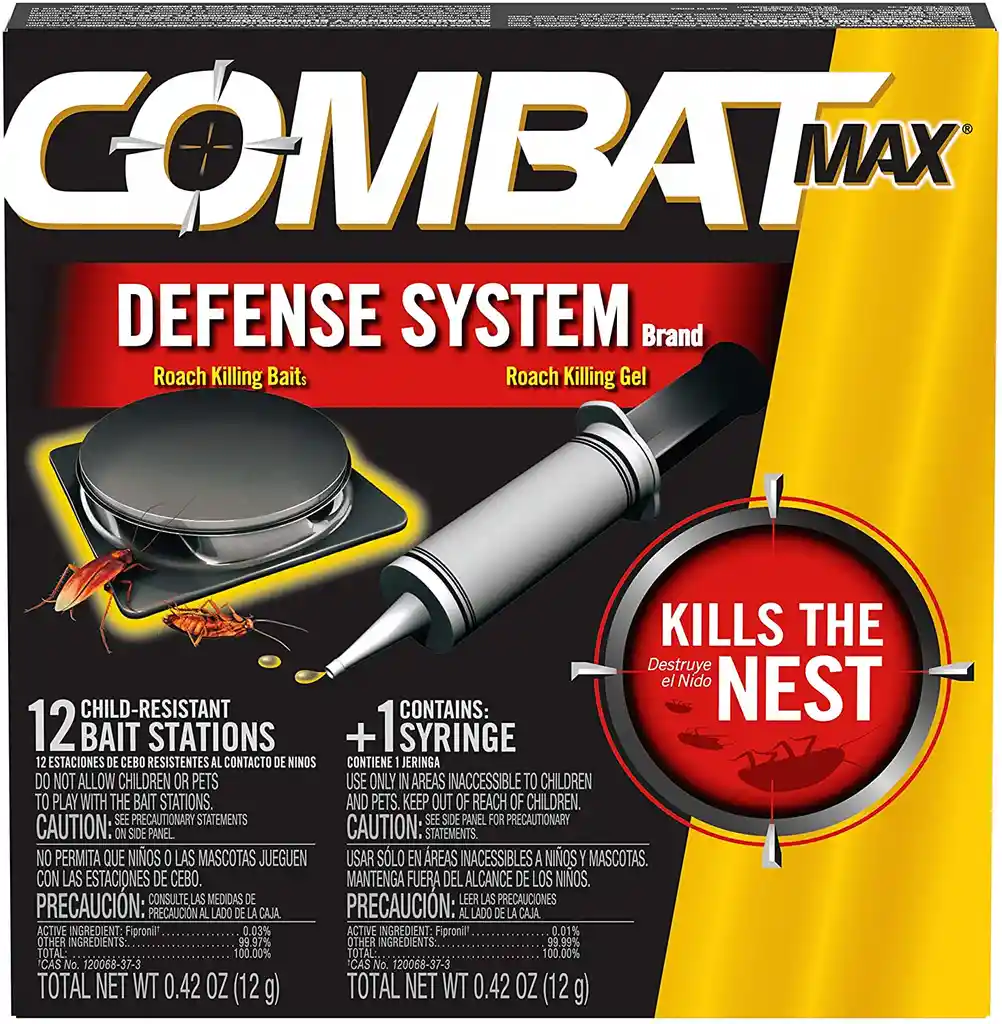 La marca Combat Max Defense System está diseñada para el exterminio y la prevención completos de cucarachas. Combat Max Small Roach Baits y Combat Max Roach Killing Gel es la combinación perfecta: use estaciones de cebo en lugares comunes donde aparecen las cucarachas y use gel en las grietas y hendiduras donde se esconden. La marca Combat Max Defense System comienza a trabajar en horas para exterminar cucarachas y ayuda a mantener la infestación bajo control por hasta seis meses. Este paquete incluye 12 estaciones de cebo para matar cucarachas a prueba de niños y 1 jeringa de gel para matar cucarachas. Cómo funciona el cebo para matar cucarachas de la marca Combat Max Defense System: 1. Las cucarachas entran en la estación de cebo y se comen el cebo. 2. Las cucarachas muerden el cebo de regreso al nido. 3. Las cucarachas comparten el cebo, matan a otras cucarachas y destruyen el nido. El gel atrae a las cucarachas en busca de comida y agua al cebo.