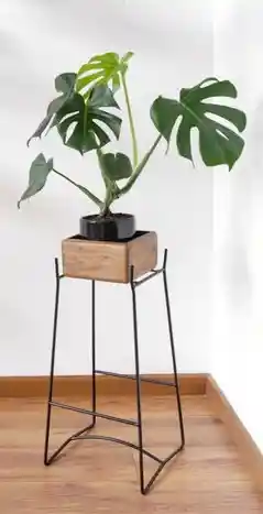 MATERA HYGGY, FABRICADA EN ESTRUCTURA METALICA CON CAJON EN MADERA DONDE SE COLOCA VASIJA EN CERAMICA. MEDIDA 30 X 30 X 75 COLOR MADERA