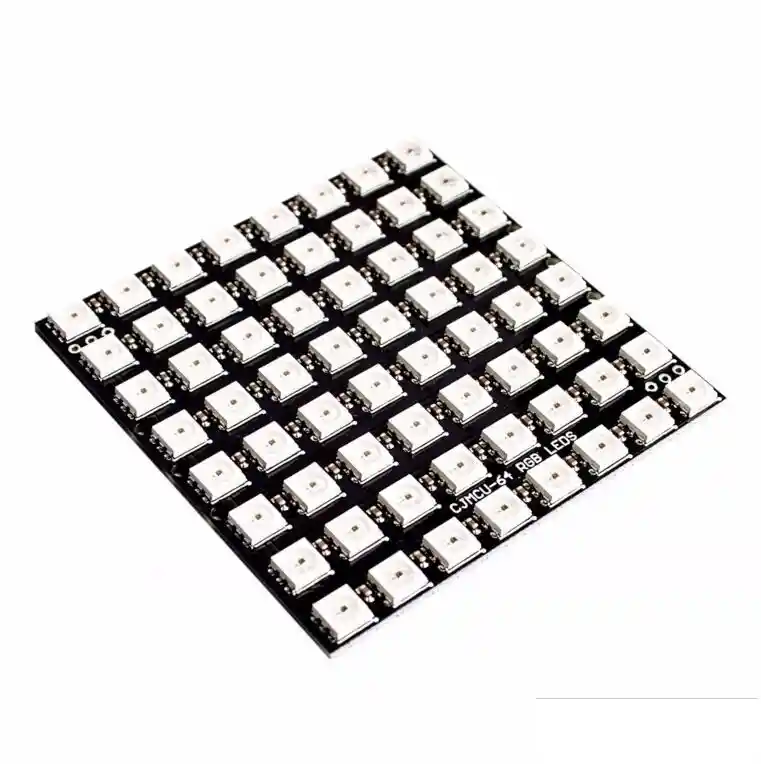 Tamaño: 65 mm * 65 mm Voltaje: DC 5V Interfaz: IO 8 * 8 = 64RGB Chip: WS2812b LA COMPRA INCLUYE: 1X MATRIZ LED RGB 8X8