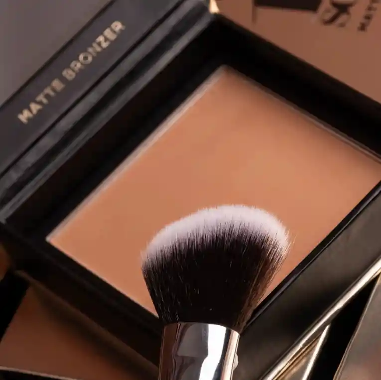 Bronzer de maquillaje en polvo con partículas nacaradas para darle a la piel calidez con acabado mate.