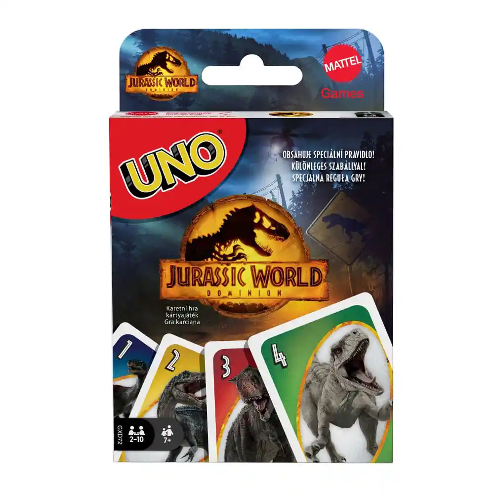 El juego cuenta con un mazo decorado con gráficos de la película de aventuras de dinosaurios. Al igual que en el juego clásico uno, los jugadores hacen coincidir los colores, los números y los símbolos con la carta que haya en la parte superior del montón de descarte.
