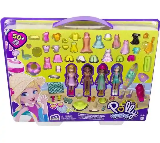 TENEMOS PUNTO FISICO EN LA CIUDAD DE CALI !! Haz olas con la Colección Acuática de Modas de Polly Pocket. Esta adorable colección cuenta con cuatro muñecas de 8 cm, incluyendo a Polly, Shani y dos amigas vestidas con bonitos atuendos, además de todo lo esencial para pasar un día lleno de estilo con temática acuática en la playa, el lago o la piscina. Cada muñeca viene con entre 13 y 15 accesorios de temática acuática, como una tabla de surf, esnórkel, aletas, hula-hula, una patineta, patines, pelota, cubeta, flotador circular, tabla para el agua, una toalla y mucho más para estar preparadas para las actividades del día. También pueden hacer castillos de arena con la cubeta, jugar vóleibol de playa, divertirse con un hula-hula, una patineta y patines. Cada muñeca viene con atuendos y accesorios para combinar, como trajes de baño, un sombrero, una visera y más para complementar sus conjuntos. Y cuando necesitan refrescarse después de toda la diversión, cuentan con bebidas frutales y paletas de helado. ¡Qué día divertido en el agua con Polly Pocket y sus amigas! Los colores y las decoraciones podrían variar. Las muñecas no se pueden mantener de pie por sí solas. Excelente regalo para niñas de 4 años en adelante.