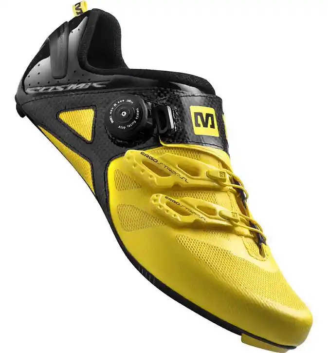 MAVIC COSMIC ULTIMATE ROAD Para el ciclista que busca la máxima comodidad, rendimiento y transferencia de potencia, presentamos las zapatillas Mavic Cosmic Ultimate Road. Diseñados en todos los sentidos para integrar la tecnología y las técnicas de construcción más avanzadas de Mavic, estos zapatos son algo digno de contemplar.El nivel superior de transferencia de potencia proviene de la suela Energy Full Carbon SLR. Esta suela extremadamente delgada de 5.5 mm ofrece una rigidez suprema al tiempo que te acerca a los pedales para una transferencia de potencia óptima de tus piernas a la carretera.La parte superior está construida con Energy Frame Carbon para proporcionar una sujeción ligera del pie. Un soporte de talón Energy Lock Carbon Comp garantiza la mejor posición del pie posible junto con una reducción en el roce. La Lengua 3D Ergo está construida ergonómicamente para proporcionar el mejor nivel de comodidad, transpirabilidad y sujeción del pie.La suela interna de doble densidad diseñada con espuma OrthoLite® y soporte de EVA en el talón y el arco proporciona un excelente soporte para los pies y estabilidad para la transferencia de energía óptima. Además de esto, están las propiedades superiores de gestión de la humedad, que actúan para mantener los pies frescos y cómodos.El Ergo Dial es un sistema de retención liviano que permite un ajuste rápido y preciso. Los cierres frontales Ergo Strap SL son más ligeros y resistentes que la correa de velcro estándar.
