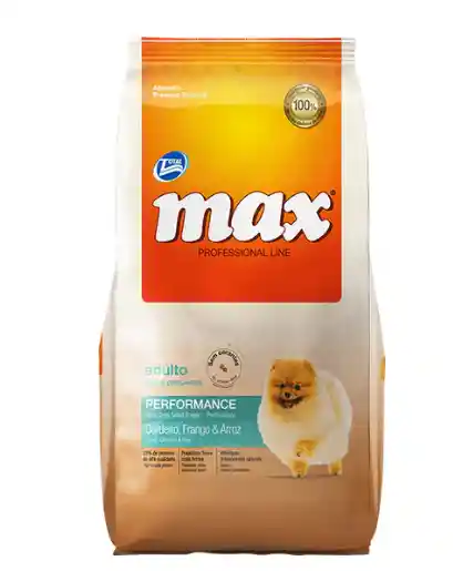 El concentrado para perros adultos de razas pequeñas premium de la línea Professional Line Performance de Max es un concentrado con rico sabor a pollo que aportará una nutrición óptima y balanceada. Su fórmula posee ingredientes naturales, libres de colorantes, sabores y aromas artificiales. Su objetivo principal es reforzar la vitalidad de los perros adultos de razas pequeñas, manteniéndolos activos y llenos de energía para correr jugar y hacer lo que más les gusta. Contiene nutrienes importantes para llevar una sana nutrición como lo son las proteínas para mantener la masa muscular, antioxidantes para mantener fortalecido el sistema inmunológico, vitaminas y minerales. Contiene buenas fuentes de ácidos grasos omegas que favorecerán la salud de la piel y el brillo del pelaje.