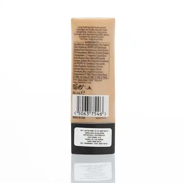 ´- Cobertura: Media - Tipo de Piel: Normal a Seca - Acabado: Natural / Semi Mate Beneficios: Resistente a Las Manchas y al Tacto Acabado Uniforme Que Dura Hasta 8 Horas Libre de Fragancia