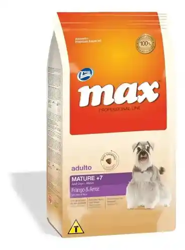 Alimento seco Max Mature con pollo y arroz para perros adultos maduros. Fórmula con menor contenido calórico y soporte articular para la etapa intermedia de vida.