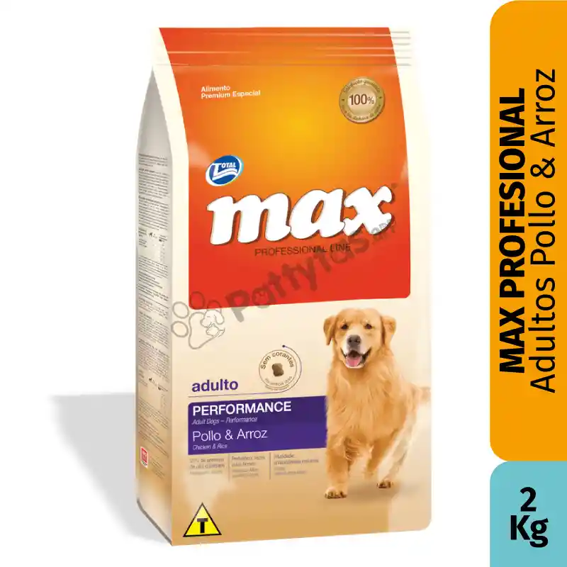 MAX PROFESSIONAL LINE ADULTO PERFORMANCE POLLO ARROZ, tu perro 🐕 se alimentará con un producto libre de colorantes y aromatizantes artificiales. Desarrollado con fuentes de proteínas de alta calidad y antioxidantes naturales, que ayudan a mantener saludables las defensas del organismo y refuerzan la vitalidad del perro adulto. Max Professional Line es producido con ingredientes seleccionados, como linaza – fuente de omega 3 – y arroz – excelente fuente de carbohidratos. También cuenta con Extracto de Yucca, que proporciona menor volumen y olor de las heces, y prebióticos, para mejorar la absorción de los nutrientes
