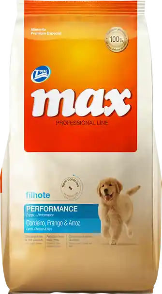 Acaba de llegar a tu casa un nuevo miembro de la familia. Con Max Performance Cachorros Pollo Arroz, le ofreces un alimento libre de colorantes y aromatizantes artificiales. Producido con proteínas de alta calidad e ingredientes seleccionados, como linaza - fuente de omega 3 - y arroz - excelente fuente de carbohidratos. También cuenta con prebióticos, para heces más firmes, y calcio, para huesos y dientes más fuertes y saludables. Aprovecha ese momento especial ofreciendo un alimento Premium Especial.