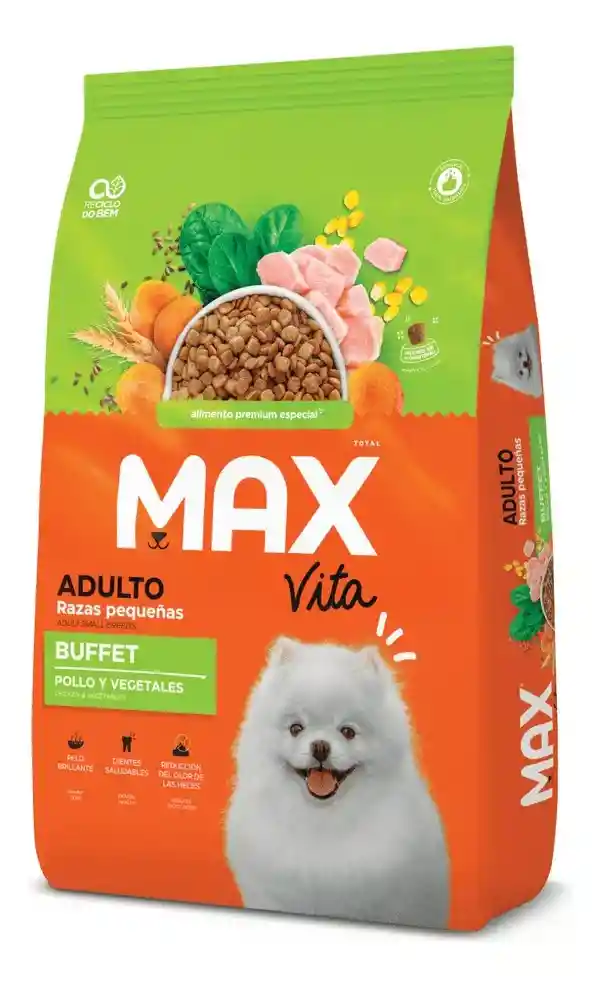 Max Vita Razas Pequeñas Pollo y Vegetales es la opción ideal para los perros adultos de razas pequeñas que buscan una alimentación equilibrada y deliciosa. Con un sabor irresistible a pollo y una mezcla de vegetales, este alimento seco está diseñado para satisfacer las necesidades nutricionales específicas de tu mascota, asegurando que se mantenga activa y saludable. La fórmula de Max Vita no solo proporciona una dieta rica en proteínas, sino que también actúa como un protector de la salud oral, ayudando a mantener los dientes limpios y fuertes. Cada croqueta está elaborada con ingredientes de alta calidad, garantizando que tu perro reciba todos los nutrientes esenciales para su bienestar. Este producto de Neovia es perfecto para aquellos dueños que desean lo mejor para sus compañeros peludos. Al elegir Max Vita, estás optando por un alimento que promueve la vitalidad y la felicidad de tu mascota, convirtiendo cada comida en un momento de placer y salud. Garantía del vendedor: 30 días