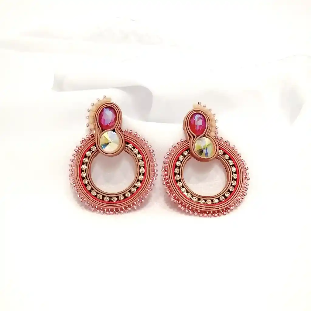 Hermosos aretes elaborados en soutache con cristalesLargo: 6cm