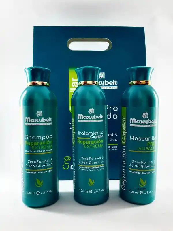 Kit Proalisado Cirugía Capilar Maxybelt X 200 Ml Cirugía Capilar Sin Sal Calidad: Línea profesional. Excede notablemente el estándar del mercado. Importante: Para obtener rápidos y mejores resultados en tu cabello, debes usar todos los productos de este kit capilar. Contenido: 1 champú x 200 ml + 1 mascarilla x 200 ml + 1 tratamiento x 200 ml. Usos: Para todo tipo de cabello, especialmente los cabellos secos, maltratados, quebradizos y con frizz. No se aconseja el uso de este kit en cabellos recién tinturados. Beneficios: Limpia, nutre, suaviza, abrillanta, hidrata profundamente, repara y controla el volumen del cabello. Ni ácido glioxílico. El tratamiento protege el cabello de la radiación solar, de la plancha y del secador. Además, ayuda a evitar las horquillas en las puntas. Nuestro Cumplimiento y Calidad es nuestra mejor presentación, Productos 100% Originales! Compra con la seguridad que recibirás toda la asesoría de expertos Técnicos Capilares certificados en cuidado, prevención y estética. MECHU2 PELUQUERÍAS