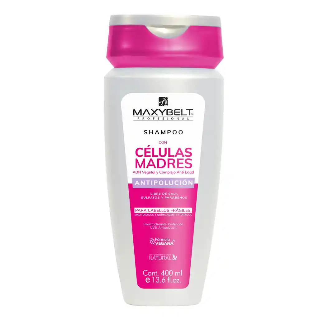 El Shampoo Células Madre Maxybelt (400ml) es un limpiador capilar sin sal ni sulfatos, ideal para cabello frágil y maltratado. Combina células madre vegetales y extracto de Baobab para nutrir, fortalecer, brindar efecto antienvejecimiento y aportar brillo intenso. Es un producto libre de crueldad animal, hipoalergénico y sin TACC.