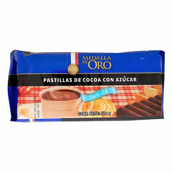 Medalla de Oro pastillas de cocoa sabor vainilla con azúcar. Bolsa por 500 gramos.