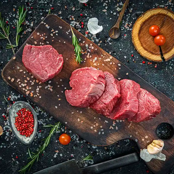 Medallones de solomito madurado previamente arreglado. Es el corte con más terneza en la res está ubicado en el cuarto posterior del bovino, en la región sublumbar interna, también llamado lomito o lomo fino. Todos nuestro cortes vienen empacados al vacío.