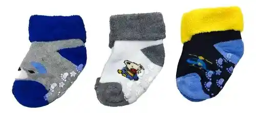 ***SOMOS GLOBOS Y PELUCHES MASMELO**** *************LINEA BABY************ *******MERCADO LIDER PLATINUM********* Por tu compra te llevas: 3 pares de medias iguales a la foto con patitas antideslizantes para bebes de 0 a 12 meses ..........Material....... 96% polyester 4% elastano HECHO EN COLOMBIA RECOMENDACIONES: -Lavar a mano -Secar a la sombra -no usar blanqueador -no retorcer -no deje en remojo -use plancha tibia HECHO EN COLOMBIA