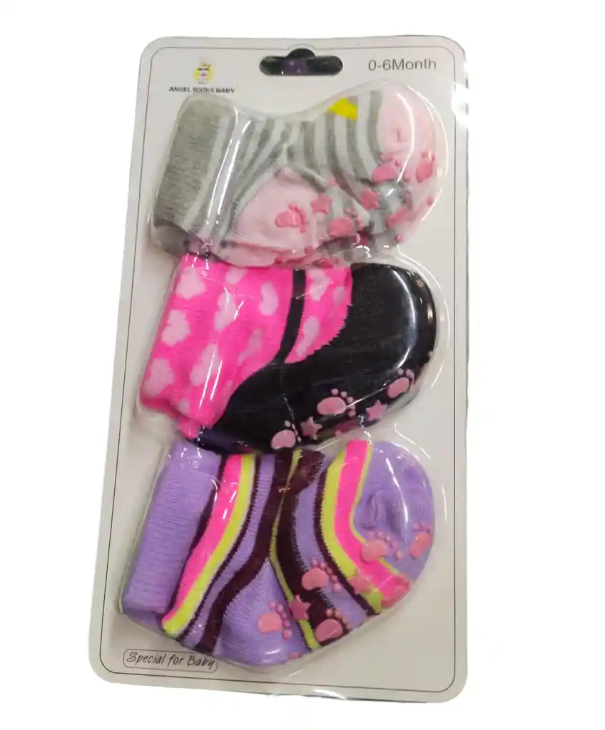 Media Infantil Para Bebe x3 0 a 3 Año 95% Algodón, 5% Uretano, 95%Cotton y 5%Spandex