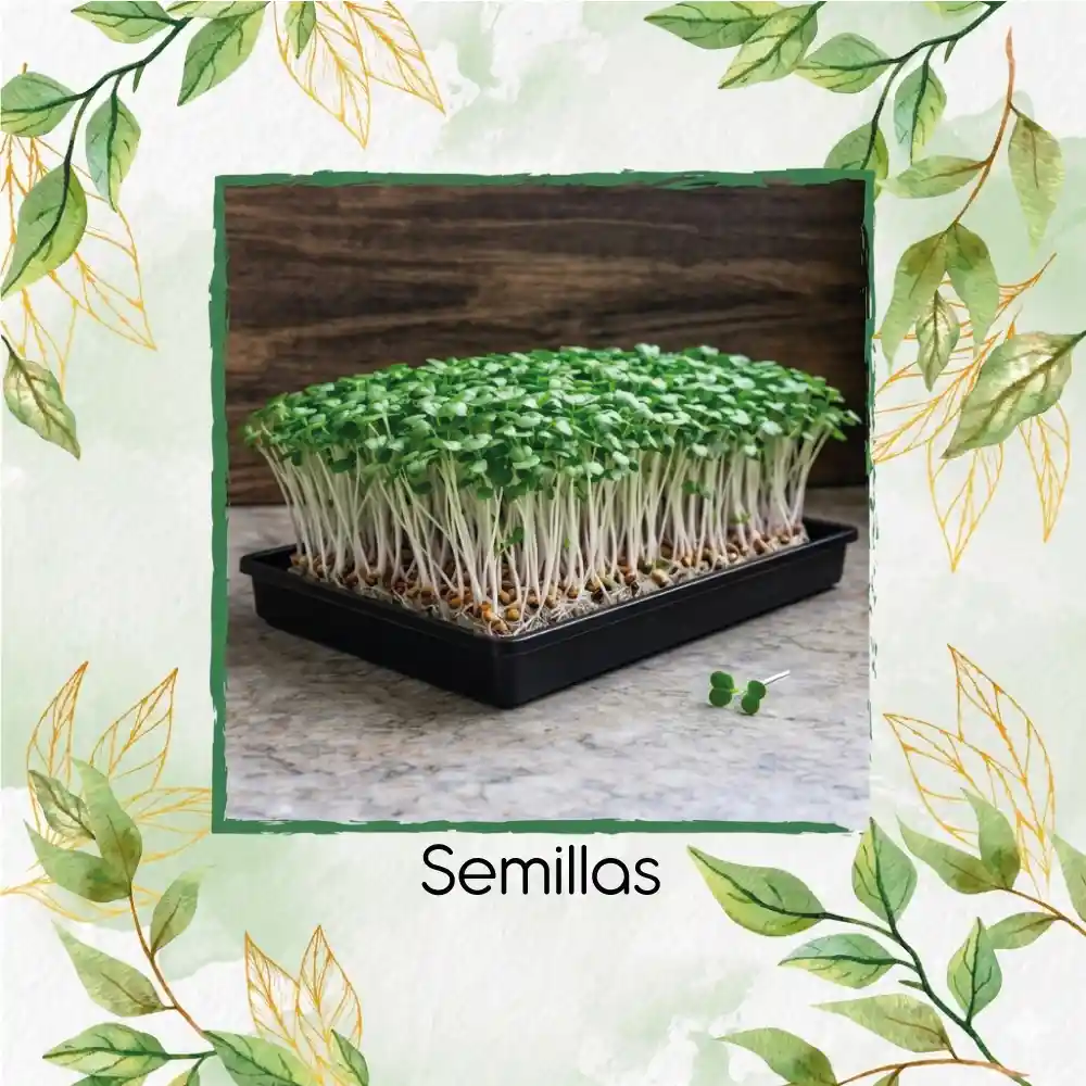 Bienvenido a Garden Green, Tú Vivero Virtual Una vez realizada la compra, te indicaremos como llevar el proceso de germinación paso a paso de una manera precisa, para que este sea exitoso, ya que no solo te vendemos una semilla, te ofrecemos la oportunidad de tener una huerta urbana productiva. • Contenido del Paquete: 1. Semillas. 2. Guía para la germinación de las semillas. 3. Semillas de obsequio. 4. Contacto directo con nosotros para ayudarte en tu proceso de siembra. • Semillas: Mostaza Amarilla. • Color: Tallo Blanco a Verde Claro. • Textura: Ligeramente Crujientes. • Principales Nutrientes: Vitaminas C, K y A, Calcio, Potasio, Isotiocianatos y Ácido Fólico (B9). • Tiempo de Germinación: 3 - 4 días. • Tiempo estimado de Cosecha: 7 - 10 días.