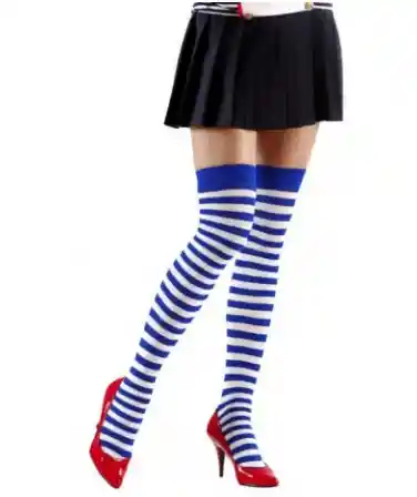 💙 Media Liguero Rayas Azul con Blanco – Cosplay Halloween 🎃 Luce un estilo divertido y coqueto con estas encantadoras medias tipo liguero 💫 con rayas azul y blanco, perfectas para darle un toque original a tu disfraz o look de cosplay. 🎭✨ ✨ Características: 💙 Color: Azul con rayas blancas 🧦 Estilo: Tipo liguero con diseño rayado 🎃 Ideal para: Cosplay, disfraces, fiestas temáticas y Halloween 🌙 Material: Suave, elástico y cómodo al tacto 💃 Talla única: Se adapta fácilmente a diferentes cuerpos Atrévete a destacar con un accesorio lleno de estilo y diversión 💋👠