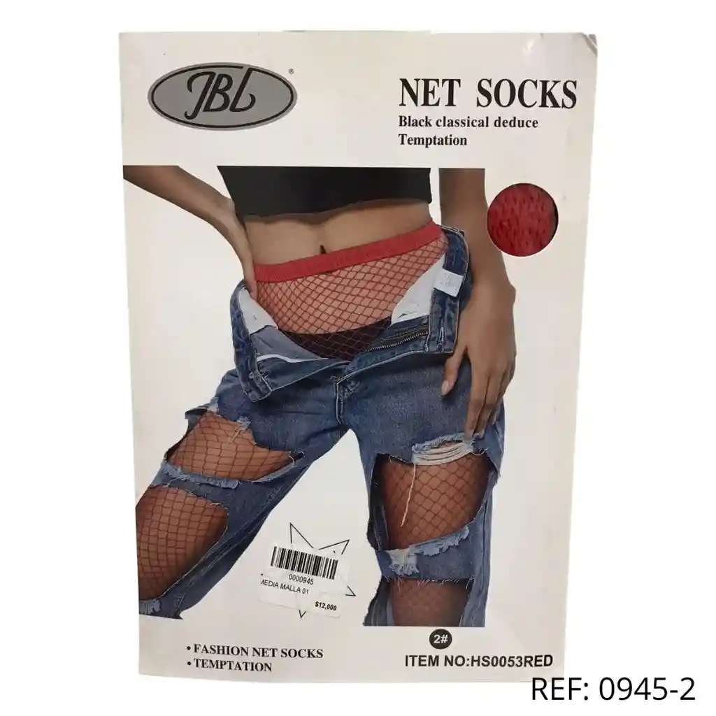 Diseño moderno tipo red con pretina roja elástica. Ideal para looks audaces y divertidos.