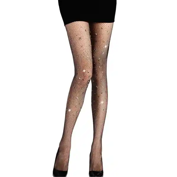 Media de malla clásica de hueco pequeño con pequeños muranos de colores. CARACTERÍSTICAS: Material: Nylon 75%, Elastane 25% Talla: Única Color: Negra Incluye: Media TIP: Puedes usar este accesorio para convertir tu lencería en un disfraz y/o renovar un atuendo que ya hayas usado. NOTA: Las medias son talla única, son muy elásticas y se adaptan a cada figura. (no incluye hilo) CUIDADOS: por su material requiere que sea lavado a mano usando agua fría y secado a la sombra, tenga en cuenta que al ser una prenda delicada no se recomienda el uso de desinfectantes o planchas.