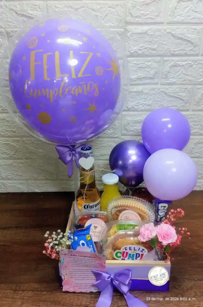 media tarde o desayuno sorpresa con jugo sándwich, mix de fruta cerveza bonyurt pastel de pollo con pandebono galletas chocolate