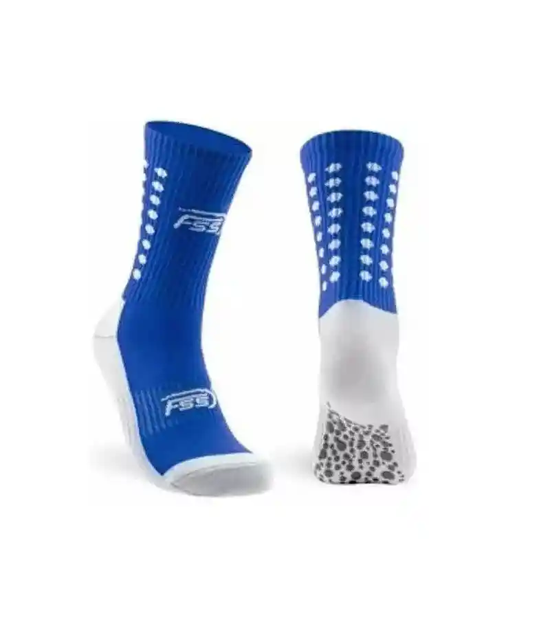 Talla: 8-10 Color: Azul // La media antideslizante posee un sistema de parches al exterior de las medias (ANTI SLIP WET TECHNOLOGY), que evitan que los pies se deslicen al interior de los guayos o tenis, amortiguando los pies cuando se realizan cambios de ritmo y dirección durante su uso. Evitan la generación de ampollas y generan máxima comodidad ya que se amoldan perfectamente al pie por su cosido con doble hilo de compresión deportiva, perfecto para un juego cómodo y de alto rendimiento. Talla única 8/10 Material: 100% poliéster :: Media pantorrilla