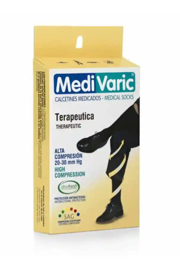 compresión graduada decreciente del tobillo hasta la rodilla que favorece la circulación y el retorno venoso.
