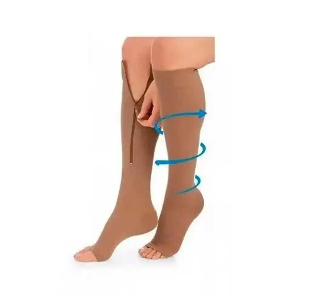 Los Calcetines de Compresión Anti Várices con cremallera están diseñados para mejorar la circulación sanguínea, reducir la inflamación y aliviar el dolor y la fatiga en las piernas. Ideales para prevenir y tratar venas varicosas, edemas y retención de líquidos, ejercen una presión controlada que favorece el retorno venoso y disminuye el riesgo de trombosis venosa profunda. Fabricados con una mezcla de nylon transpirable y spandex, se adaptan cómodamente a cualquier calzado y brindan una sensación de descanso y ligereza. Su cremallera resistente facilita su colocación y ajuste, convirtiéndolos en una opción práctica y eficaz para hombres y mujeres que buscan bienestar y alivio diario. Ficha Técnica: Talla S-M (pantorrilla de 36-38cm) Talla L-XL (pantorrilla de 40-42cm) Beneficios: Mejora la circulación sanguínea, reduce la hinchazón, previene várices y alivia el cansancio en pies y piernas. Diseño y comodidad: Suaves al tacto, unisex, cómodas, discretas y adaptables a cualquier tipo de calzado. Características prácticas: Cremallera resistente, fáciles de poner y quitar, refuerzo en talón y puntera abierta. Material y cuidado: 92% nylon y 8% spandex, lavables a máquina. ** _Para defectos de fábrica o retractos: \**_Por favor revise el producto apenas lo reciba y antes de usarlo. No aplican ley de retracto o defectos de fábrica luego de usar el producto. Se manejan máximo 5 días para reportar defectos de fábrica (por ejemplo, producto funciona mal, piezas faltantes, rotas, etc). Para hacer efectiva la devolución el producto debe devolverse con el empaque original, el cual debe estar en buen estado, incluir todos los documentos y las partes completas y sin daños.