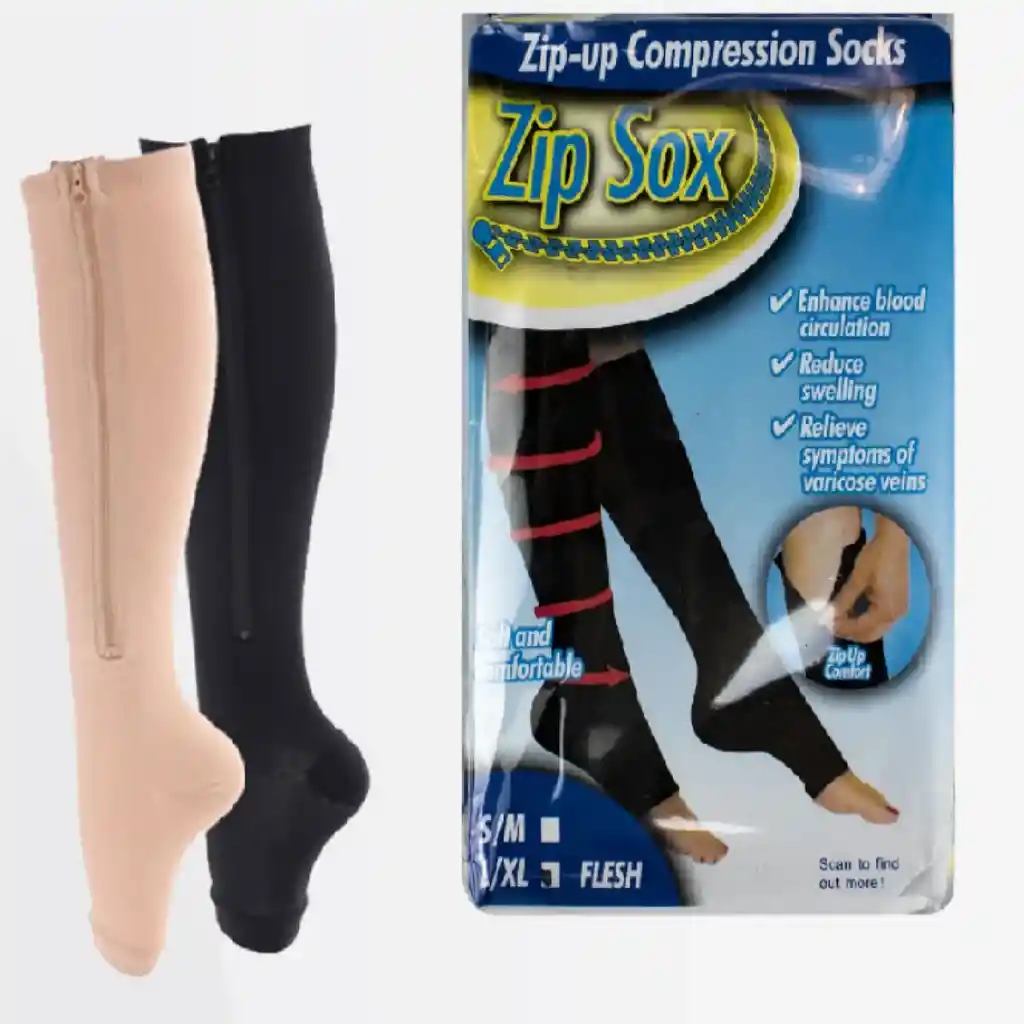 Talla L-XL Medias elásticas de compresión, elaboradas para ayudar a mejorar la circulación de las piernas. Recomendadas para: Piernas cansadas o hinchadas. Varices, Dolor en las piernas Quienes tienen mucho tiempo sentados o de pie.