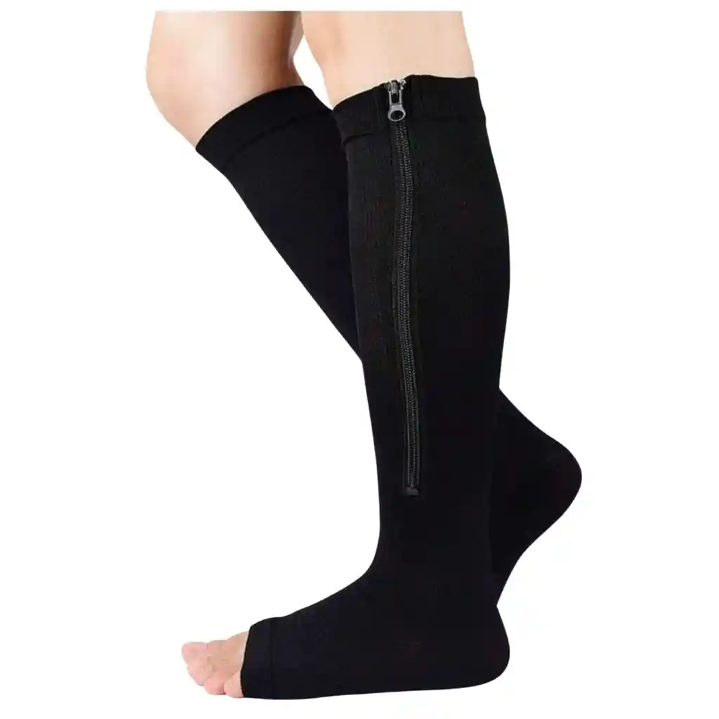 Estas medias de compresión abiertas en la punta están diseñadas para brindar soporte y mejorar la circulación en las piernas. Fabricadas en tejido elástico y transpirable, se extienden desde el pie hasta justo debajo de la rodilla, ofreciendo una compresión graduada ideal para personas con varices, fatiga muscular o problemas de circulación. El diseño incluye una práctica cremallera lateral que facilita su colocación y retiro, especialmente útil para adultos mayores, mujeres embarazadas o quienes buscan comodidad sin esfuerzo. La apertura en los dedos permite mayor ventilación y libertad, sin comprometer el efecto terapéutico. 📏 Talla S/M Indicada para pantorrillas pequeñas a medianas, adaptándose cómodamente sin generar presión excesiva. ✨ Perfectas para uso diario, actividades deportivas, viajes largos o jornadas laborales extensas.