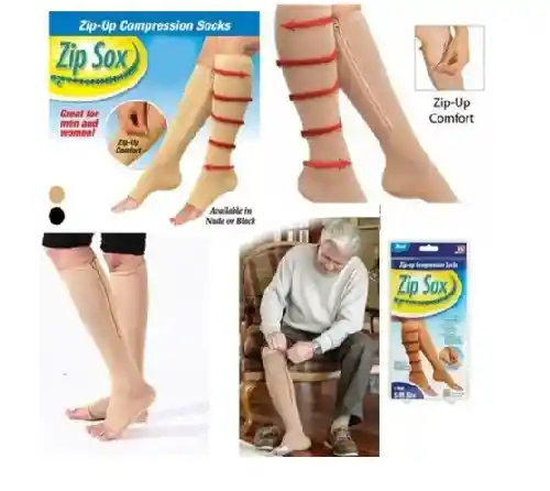 Control Varice. Alivia el dolor y el cansancio. Cremallera lateral que facilita su postura. Banda elástica para ajuste perfecto. Compresión graduada decreciente que favorece la circulación. Talón anatómico con refuerzo para proteger del calzado. Recomendada por especialistas para controlar el cansancio, pesadez y calambres. De Facil postura por el sistema Zipper (Cremallera) Aumentan la Circulación y a su vez disminuyen la hinchazón de las piernas. Diseño con dedos libres Alivia Fatiga y mejora considerablemente el síndrome de piernas cansadas Diseñado para aumentar la circulación sanguínea y reducir la inflamación. Rapido y Comodo de llevar No Visible debajo de la ropa Built in de la cremallera hace que sea fácil de llevar Diseño de punta abierta TALLA DISPONIBLE S/M