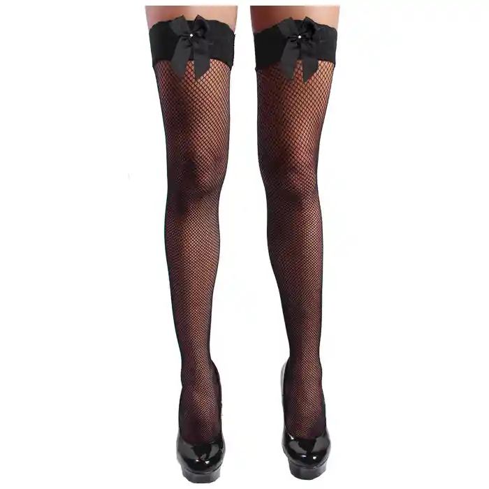 Medias de liguero malla con moños rojo y banda en silicona.Todos los pedidos se entregan de manera discreta, en bolsa de seguridad sellada y oscura. Producto 100% Colombiano.